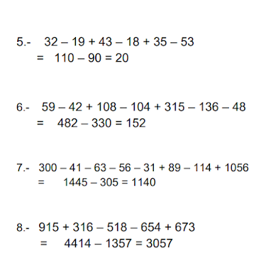 OPERACIONES INDICADAS DE SUMAS Y RESTAS / INDICATED ADDITIONS AND SUBTRACTIONS OPERATIONS